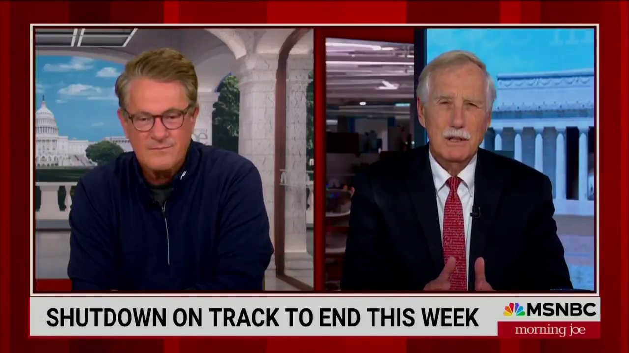 Independent Senator Angus King told MSNBC’s Joe Scarborough that part of the reason he supported breaking from Democratic leadership and opening up the government was because standing up to Trump was not working.