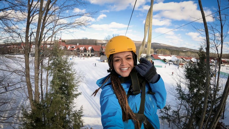 Winter zip lining at The Highlands resort near Petoskey, Michigan. (Photo: Petoskey Area Visitors Bureau)