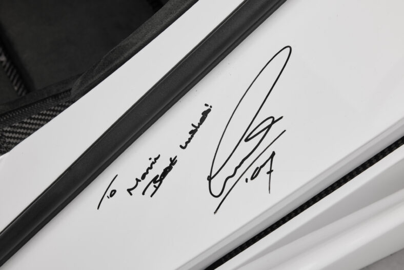 Shortly after the makeover, the left-hand-side luggage compartment was autographed by the only other F1 driver in history to match Schumacher in titles—Lewis Hamilton, who was then amid a momentous rookie season that saw him finish second by a single point in the 2007 championship race.
