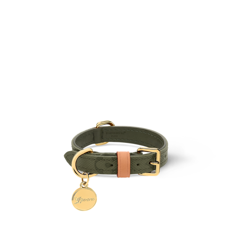 Men’s Creative Director Pharrell Williams puts his distinctive stamp on the new line, reworking signature motifs into collars, harnesses, leashes and carriers that look ripped from a fashion runway rather than the local dog park. The LV-branded collars, leashes and harnesses — blinged out with reinforced clips, adjustable buckles and cushioned handles — nod back to Vuitton’s original Monogram dog kennel introduced in 1913.