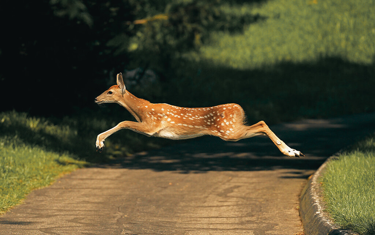 A black bear lumbers through a suburban front yard that’s been decorated for Halloween. One of the decorations—an animatronic ghost—begins to shake and moan and light up, its sensor triggered by the approaching animal. Terrified, the bear turns and sprints away, only to slam head-first into the homeowner’s pickup truck.