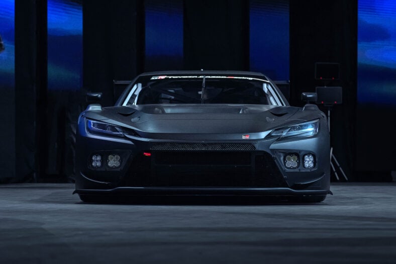 Takashi Doi, the project general manager of the GR GT, described the two cars simply: the GT is a “racing car for the street,” and the GT3 is all about the fact that “we want to win.” Both cars share a new twin-turbo V8 and the same hollow aluminum frame, and both carry the same GR badge, but the two diverge from there.