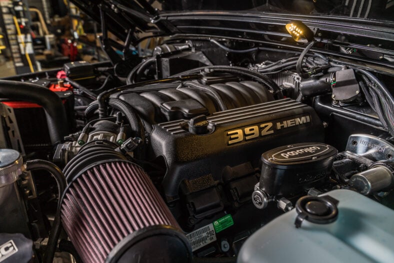 Most exquisitely, there’s a 6.7-liter MOPAR 392 HEMI V8 under the hood that sends 485 horsepower through a Bowler four-speed automatic. This is perhaps one of the most thoughtful powertrain modernizations ever seen in a restomod—the Jeep Wagoneer SJ was the first 4×4 to offer an automatic transmission, and it was mated to an AMC 327 5.4-liter V8—nicknamed “Vigilante” by Jeep, surely inspiring Vigilante 4×4’s name.