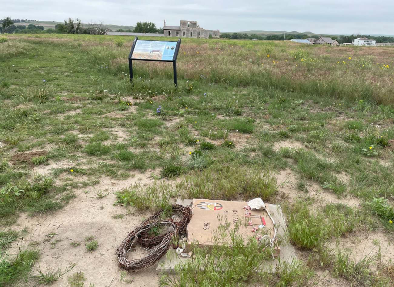 At Fort Laramie National Historic Site in Wyoming, the National Park Service plans to alter or remove a sign, titled “A Father’s Grief … A Soldier’s Honor,” that sits alongside a burial marker for Mni Akuwin, the daughter of Lakota chief Spotted Tail. The placard consists mostly of quotes from Army Colonel Henry Maynadier describing a funeral service he arranged at the fort for Mni Akuwin, who had died a few months earlier. The elaborate funeral, which Maynadier reported had moved Spotted Tail to tears, likely helped secure a peace deal with the tribe.
