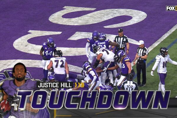 Justice Hill rushed a one-yard touchdown that extended the Baltimore Ravens’ lead over the Minnesota Vikings. Read More