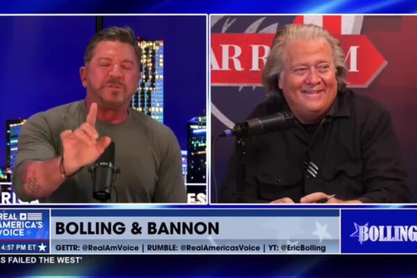Real America’s Voice Steve Bannon and Eric Bolling tried to put lipstick on a pig after Taco Trump pulled back from his tariff and invasion…