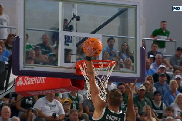 Michigan State Spartans’ Carson Cooper hammered home alley-oop slam against the North Carolina Tar Heels. Read More