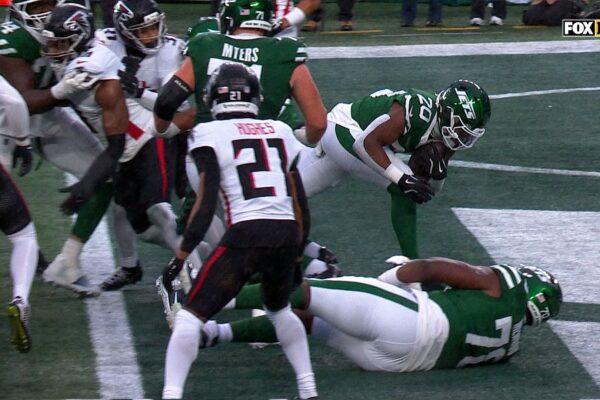 New York Jets RB Breece Hall rushed for a two-yard touchdown against the Atlanta Falcons in the second quarter. Read More