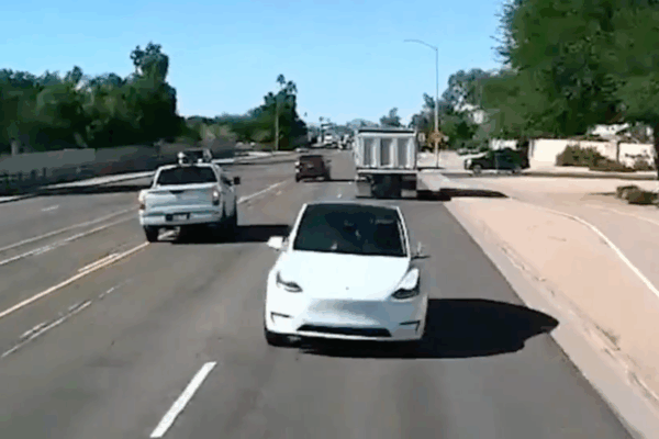 Newly released video shows the moment a Tesla swerved into oncoming traffic forcing a dump truck to crash into the wall of a senior living…